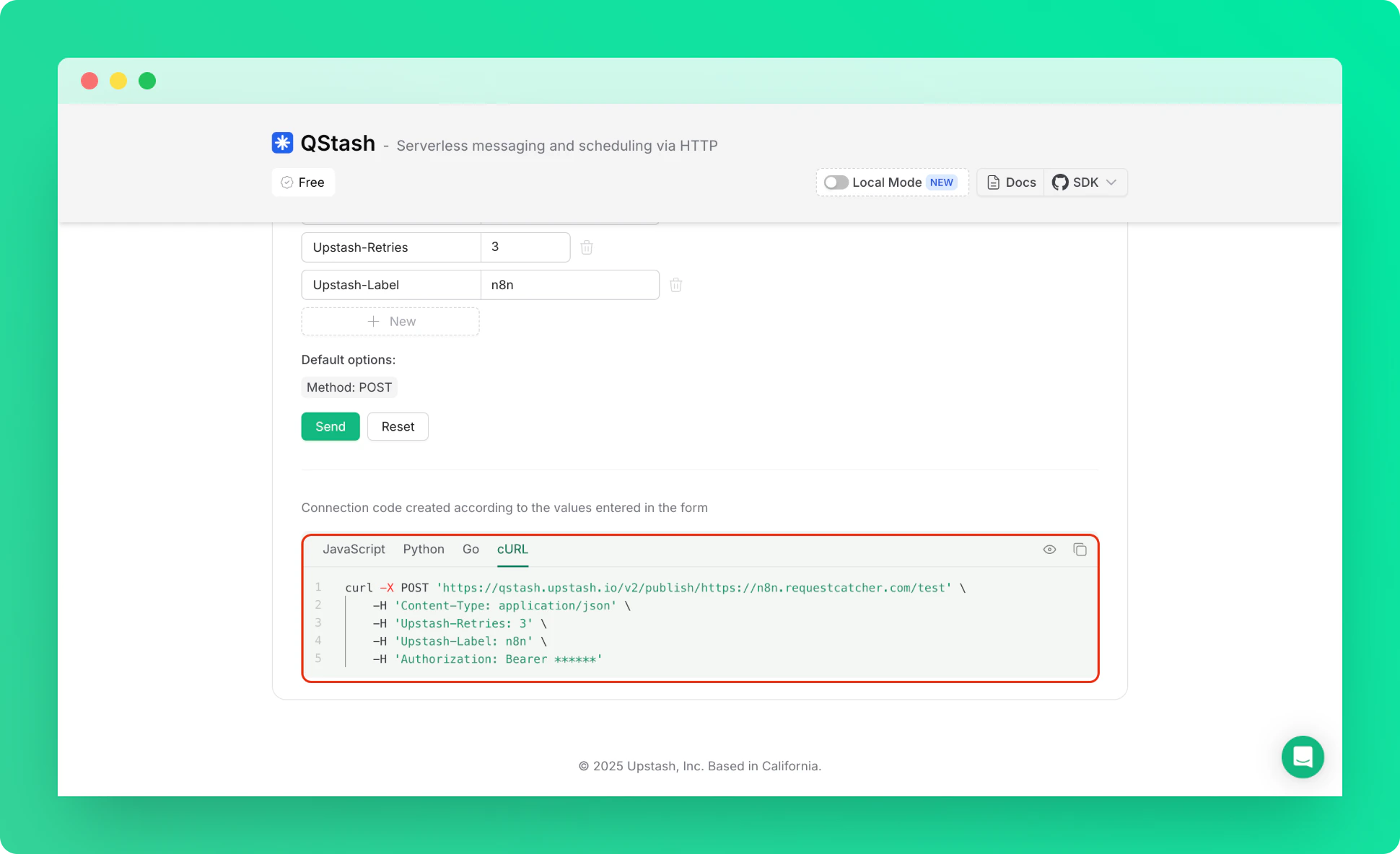 - Go to Upstash Console and open QStash Request Builder Tab.