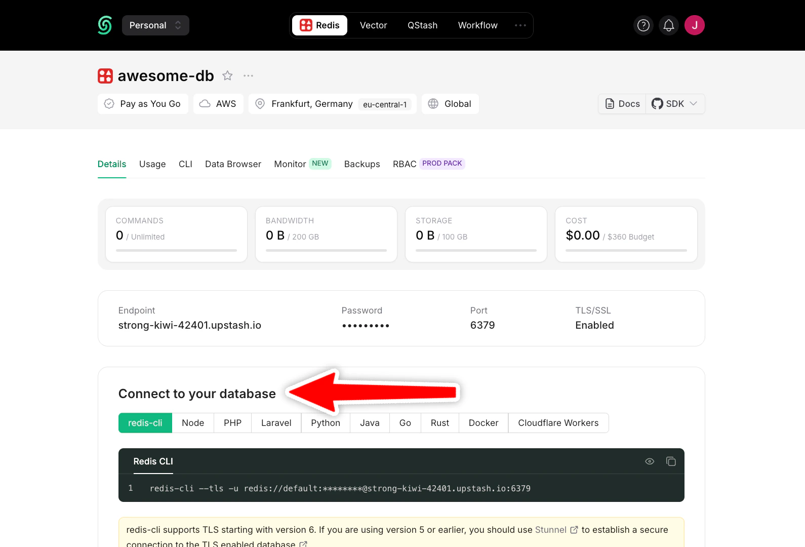 Upstash Realtime is powered by Redis Streams. Grab your credentials from the Upstash Console.
