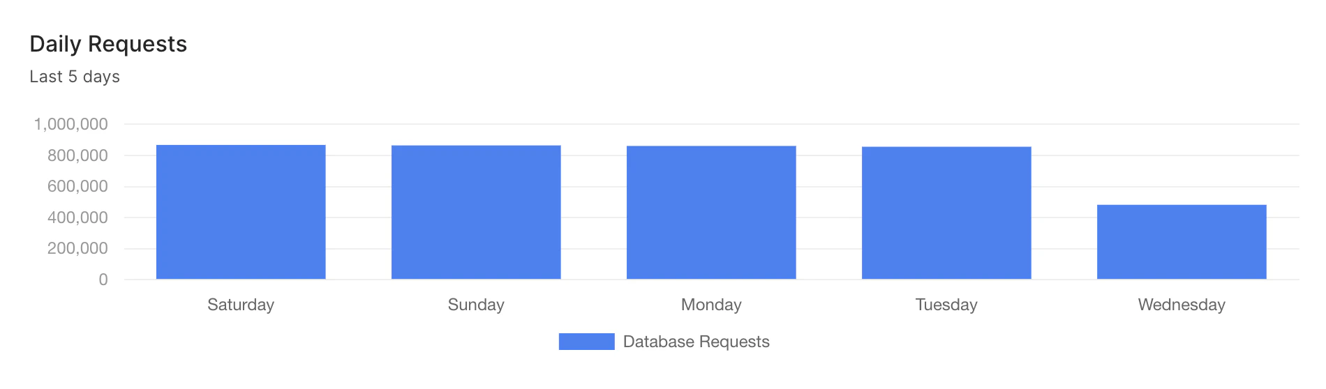 - This chart shows the daily cost of the database. The chart covers the last 5 days.